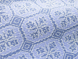 紫苑色と一言では言えないくらいたくさんの同色の濃淡で描かれた華やかな更紗の模様の小紋のお着物です。
