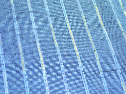 綺麗な藍の濃淡のミックスの地織だけでもとても素敵なのに、さらに一寸置きくらいに黄色の絣糸が混ざった経縞が配置されています。