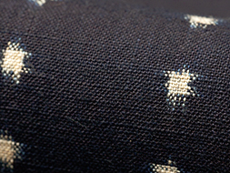 引き込まれるような深い藍色が手織りの木綿にしっとりと染められ、可愛い霰の絣が織り出されています。