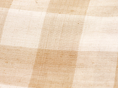 こちらは個人的にも大好きなオークル系のパウダーベージュ・香色の濃淡で中型の弁慶格子が織り出された、真綿のざっくりしたというよりも少し光沢のあるタイプの素敵な紬のお着物です。