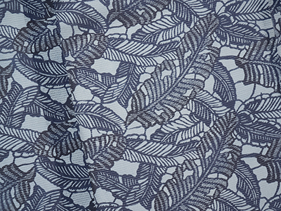 沖縄の紅型を連想するような勢いのある芭蕉の葉が中型の大きさの型で染められています。