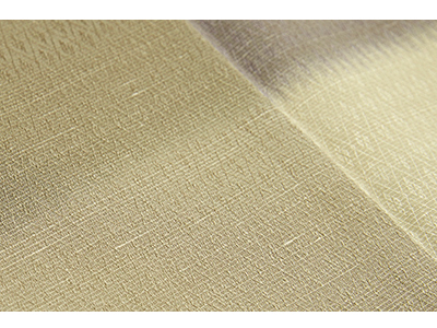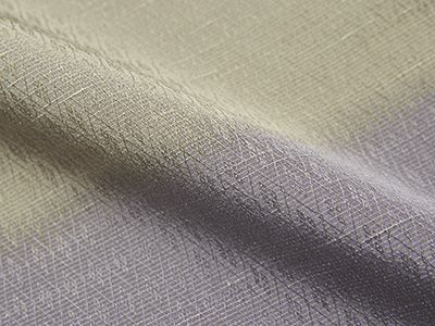 グレー味の強い藤色・藤煤竹色と、甘さのある少し緑寄りのグレー・利休白茶色の濃淡の3色で染め分けられた糸で花菱の模様が浮き織のような技法で織り出されています。