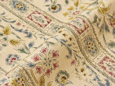 古渡の更紗を意識したような色調を本草木染で実現されていますので、なんとも言えない上等感が出ています。