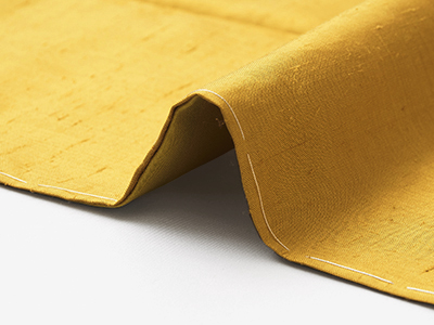 こちらのお着物は少し深みのある黄色にしてみたいと思い、美しい光沢を生かした黄金色の黄・黄橡色にしてみました。