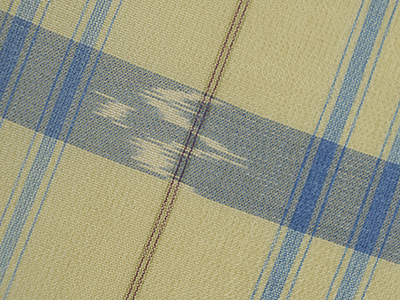 褐色の横段にはツバメやお花の絣が織り込まれ、琉球絣らしさを醸し出しています。