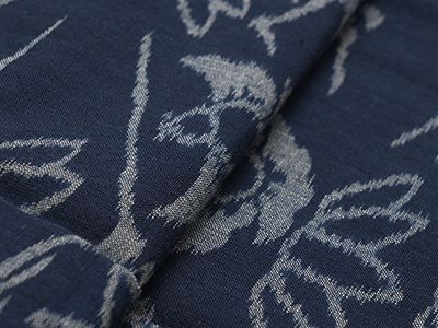 地元で栽培された伯州綿を紡ぎ、織りあがるデザインを計算して絣を括り、藍で染めた糸を機で織りますが、こちらの「竹に雀」の模様も年々少なくなっている「絵絣」と呼ばれるもので、非常に手の込んだお着物です。