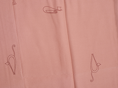 【商品説明】 明るいローズ色を淡くしていったようなピンク・長春色の地に、丸くなって寝ていたり、うーんと背伸びをしていたり、ちょこんとお座りしているような姿の猫さんが、アールデコっぽいデザインで染められた長襦袢です。 この地色ですと藍系のお着物とも綺麗に合いますし、こげ茶系にも馴染むと思います。 濃い色の襦袢を上手く着こなされますと一段とお洒落になりますし、上級者的な雰囲気にもなります。 長襦袢をきちんと着付けられますと着崩れしませんし、気持ち良く過ごせますので、お着物を着る上で大切なアイテムです。 可愛いデコ猫さんの模様が愛おしく思えるような、楽しいおすすめの一点です。 未着用品。 長春色「#cc7676 color-sample.com」 をご参照下さい。