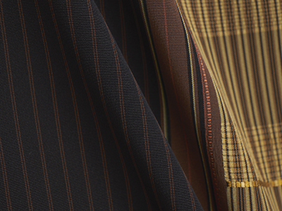 実際に袖を通しますと、左身頃の前後、左横になる部分に細い縞の部分がきて、スマートでお洒落な印象となります。