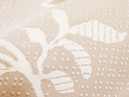 こちらはモカベージュの地に可愛い唐花文様が楽しい雰囲気で織り出されたものです。