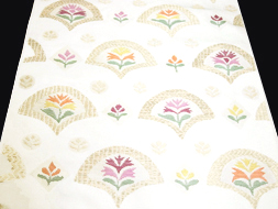 こちらは甘いクリーム色の地に、青海波の波の模様が金糸で縁取られた中に可愛いペルシャ花文が織り出されたものです。