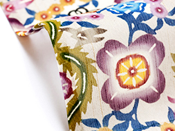 ジョーゼットのようなしなやかでほんのりと透け感のある生地ですので、全体の発色が淡い印象になっています。