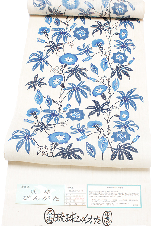 商品番号 m0231 琉球紅型夏九寸名古屋帯地 宮城里子作 販売価格 有難うございました