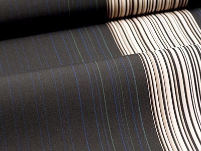 隣り合う色のもたらす効果を最大限に活かされて織り出された作品には不思議な小宇宙が広がり、縞という世界の持つ果てしない可能性を実現されているのではないかと感じます。