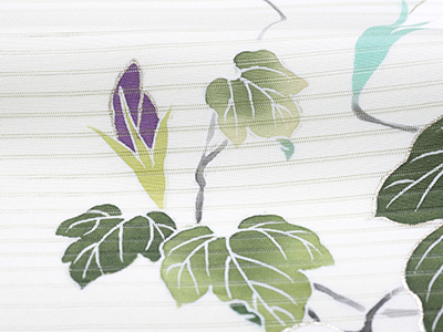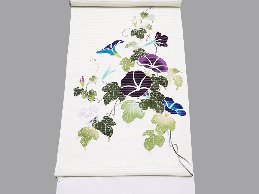 こちらは別でご紹介しています紅型の朝顔の帯地の可愛らしさとは対照的に、友禅で立派な雰囲気に描かれた朝顔の名古屋帯です。