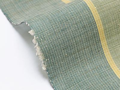 こちらのような藍と福木、楊梅の糸で織り出された縞に絣がポイントになった楽しいデザインの名古屋帯にも、品格の高さ、洗練された美しさを感じて嬉しくなってしまいます。