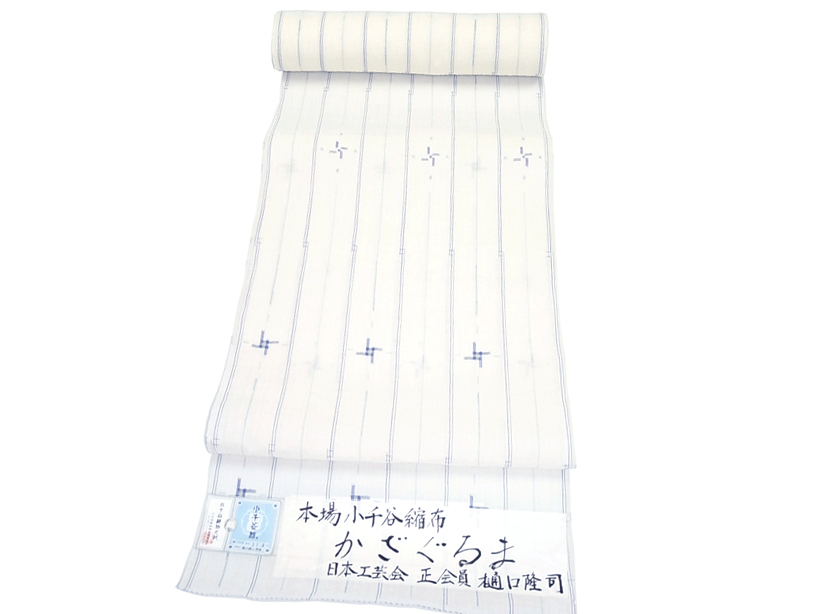 今回もう一点ご紹介させていただいております仮絵羽の作品「かざぐるま」と同タイトル姉妹作のこちらは小紋の柄附けの着尺の作品です。