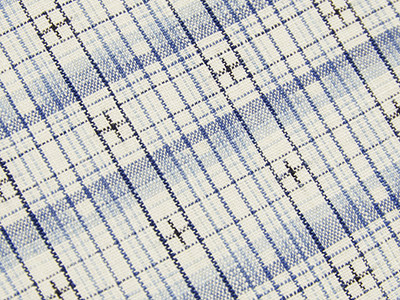 緯に藍の濃淡の素敵な暈しの縞が入れられていますが、その暈しは向かい合うような配置になっていて、それがとても効果的に白い木綿のお着物をよりふっくらとした優しい印象にしてくれているようです。