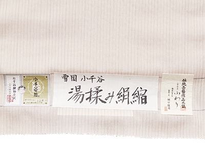 ほかにも、季節をずらして単衣にも袷にもお召しいただける、湯揉み絹縮よりも少し地厚の「絹縮」の着尺や、盛夏に涼やかにお召しいただける麻の「小千谷縮」など、バリエーションも豊かに揃っております。