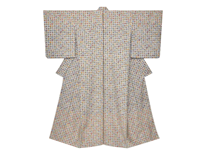 「銀色の楽園」型絵染着物地 国画会会員 小島貞二作
