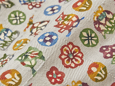 2色に染め分けられた地色と、ひとつひとつ目を引く可愛い模様。