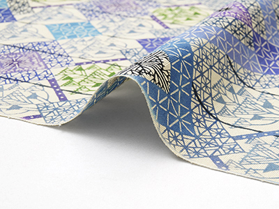 洗練された色使いの幾何学模様と野に咲く草花が融合して、万華鏡を覗くような不思議な世界が広がります。