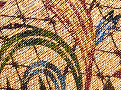 こちらは網目にすすきや蝶々の模様がデザインされた、玉那覇作品らしさのある素晴らしい芭蕉布の帯地です。