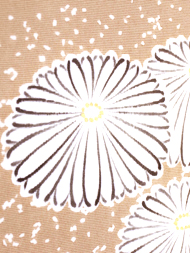 柔らかさのあるココア色、芝翫茶色の地に撒糊で白く変化のある点が染められた事で背景に奥行きが感じられ、立体感のあるものとなっている様に見えます。