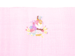 その貝紫で染めた貴重な糸を使って、大変高い技術を要するすくい織りで桃色の地にインカの雰囲気が漂うお茶目な小鳥が3羽並んだ模様のこんなに可愛い帯をつくってくれていたなんて!と思わず感激してしまいました。