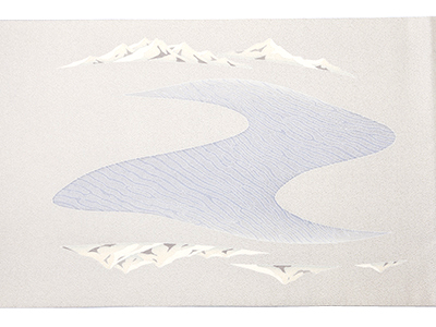 少し澄んだ、そしてやわらかさのあるシルバーグレー・霞色の地に、同系色でありながら微妙にニュアンスの違う桔梗鼠色、淡藤色といったグレー系で綺麗な風紋も細やかに、遠くまで広がる美しい景色が描かれています。
