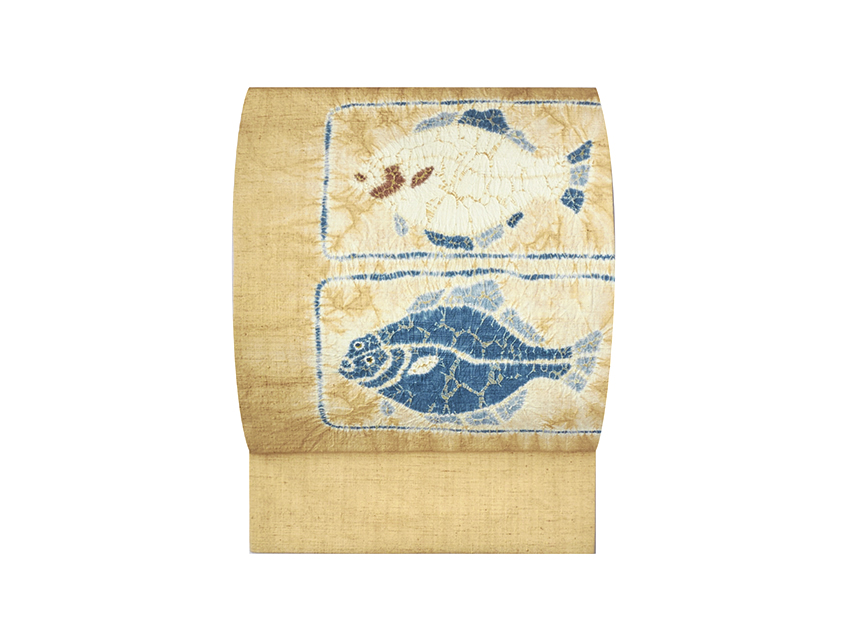 それだけでも心地良く感じられますが、お太鼓にお魚のヒラメが大きく絞り染めで描かれていて、それがまた微笑ましく見えます。