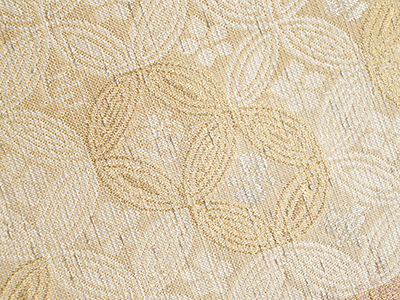 今回もう一点ご紹介させていただいております桝屋高尾さんの「ねん金綴」の袋帯と同様に、割と広いご着用範囲と思います。