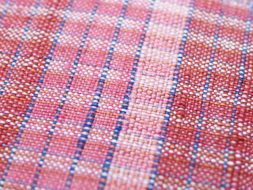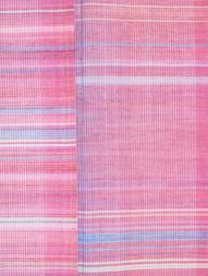 インパクトのある蘇芳色の糸がベースになっていますが、それと交差する藍の糸と織り成される不思議な色のグラデーションと動きによる複雑な変化が非常に面白い色となって光を放っています。