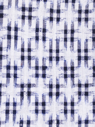 ところが実際に羽織ってみられますと、置いて見るのとはまったく違った印象で白と藍のコントラストも清々しく上品さがあり、絣の足が余韻を残しながら斜めに並んで、その模様がとてもリズミカルなお洒落さを醸し出します。