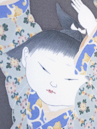 その情緒を感じさせてくれる様なとても雰囲気のある美少年が、菊の一枝を持っている図が細やかな友禅で描かれています。