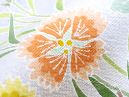 実際にお召しになって帯を締められますと、左の肩口にしか空間がないくらい全体にびっしりとお花が描かれていて、まさしくお花畑の様に明るく楽しい雰囲気があふれ、蝶々が寄ってきそうです。