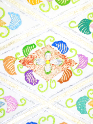 黒留袖、色留袖から訪問着、附下などの第一礼装にお使いいただけるこのタイプの帯で、個性的なデザインと色使いそしてちょっとどこかおおらかで可愛らしく、さらに品質が良いものにはなかなか出合う事がありません。