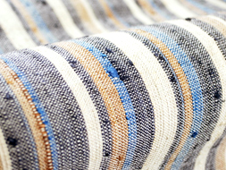 淡い薄い茶色をベースに藍の濃淡の縞が織り込まれ、丹波布などにも見られる色使いとなっています。