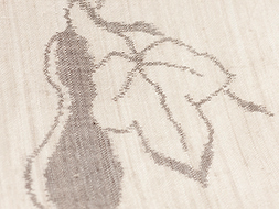 やわらかい亜麻色の地に黒橡色の瓢が枝に成っている様子が織り出されて、夏の庭先の風景のような涼やかさとおめでたさが盛り込まれているようです。
