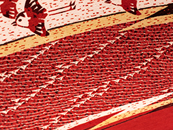 シンプルな線の集合で描かれた干潟にも見える場所を背景に飛ぶ千鳥は、キラキラと光る水面のような美しさと空の高さ、そして海の広さを感じさせるようでとても感動しました。