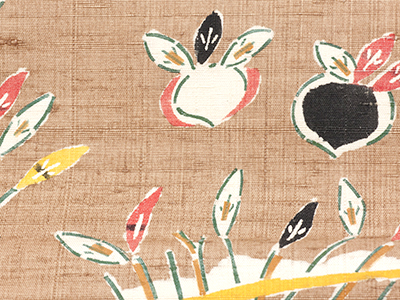 こちらは型絵染の作家さんの中でも特に高い人気を誇る、国画会会員・添田敏子さんの開名古屋帯の作品です。