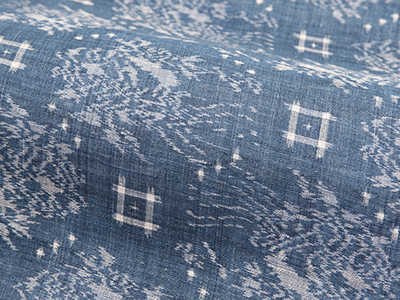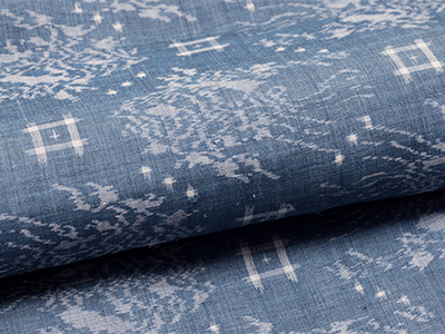 真ん中に小さな十字絣をかかえた井桁絣と、お魚や鳳凰のようにも見える複雑な絵絣が交互に並んでいます。