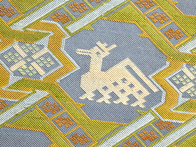 その鹿は紅鳶色や黄橡色、そして白で織られています。