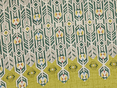 こちらは重要無形文化財「木版摺更紗」保持者、鈴田滋人さんの九寸名古屋帯の作品です。