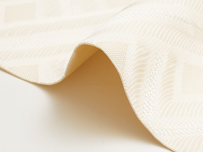 淡いパールの様な光沢を持つ白だけで織り出された文様が連続して、1色だけで織られたとは思えないほどのボリューム感があります。