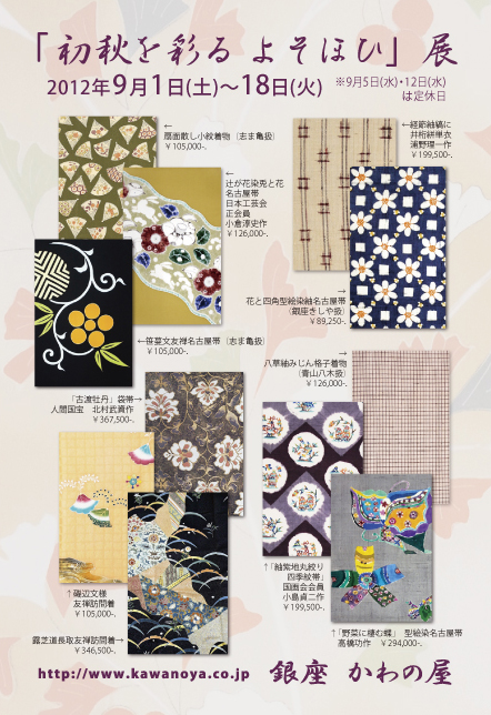 お問合せ先: 「銀座 かわの屋」 03-3572-5311(11月4日まで)
