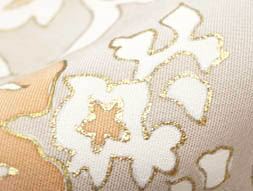 お顔の色が映えるきれいなベージュ地に、白の唐織の袋帯などをお合わせいただいてフォーマルのお席に出られますと、きっと目を引く美しいお着物姿となる事と思います。