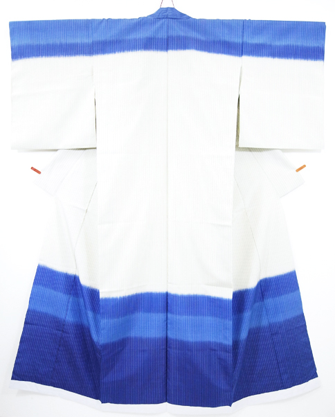 藍の魅力を知り尽くした人によるデザインと言える様な、ブルーアンドホワイトが美しく対比した素敵な段熨斗目のお着物です。
