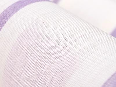 こちらは儚いほど淡く透き通る桜色の地に、同系色の少し濃い浅紫色の四角の絣と、さらに濃い古代紫色の経絣の線がそれを挟むように配置された、洗練された色使いの九寸名古屋帯地の作品です。