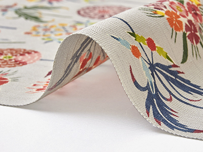 色とりどりに愉快に咲く花々を型絵染めで描いた素敵な名古屋帯は、きっとお出かけのアクセントとなって、装いをより華やかなものとしてくれそうです。