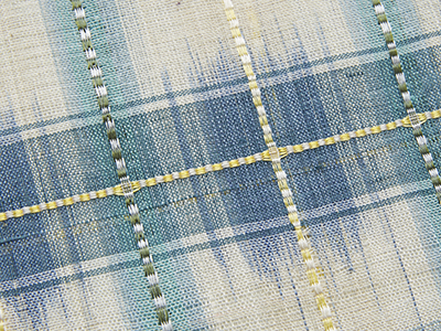 地の平織には赤城の座繰糸の中でも精錬していない「生絹」と呼ばれる糸を、浮織の部分は精錬した生糸を使用されています。